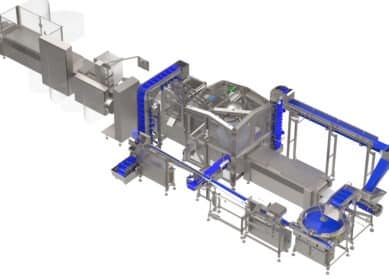 The Hybrid Sausage Solution is a fully integrated system that lets you process both straight sausages and cocktail sausages on a single machine. Save time, floor space and operating costs with this revolutionary packaging technology, all while using the same thermoformer. This innovative line counts and weighs cocktails sausages grams precision, supported by all essential ground-level equipment.